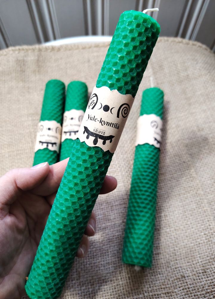Pitkä Yule-kynttilä, vihreä (22 cm)