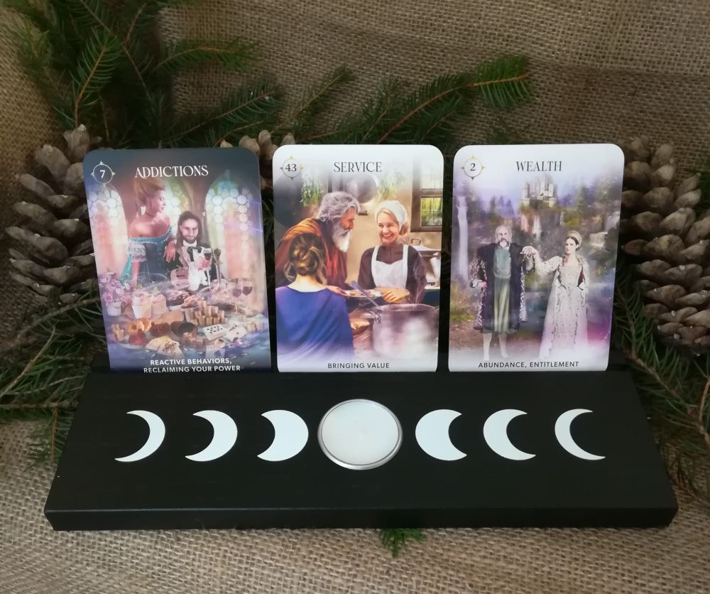 Korttiteline kynttiläpaikalla, kuun vaiheet