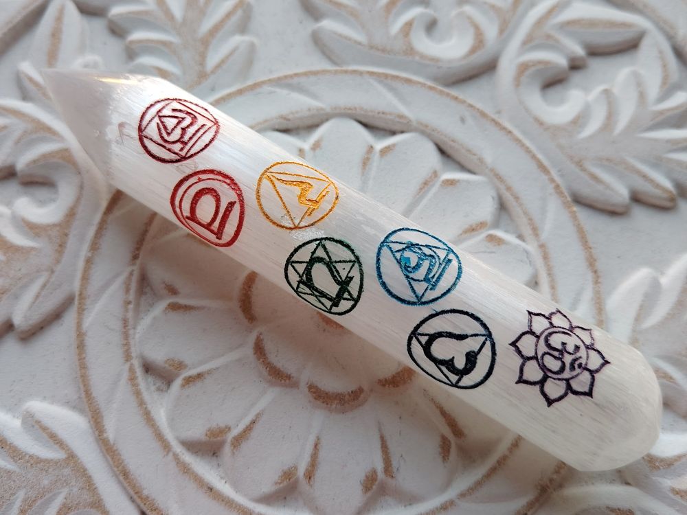 Seleniittisauva, Chakrasymbolit (15 cm)