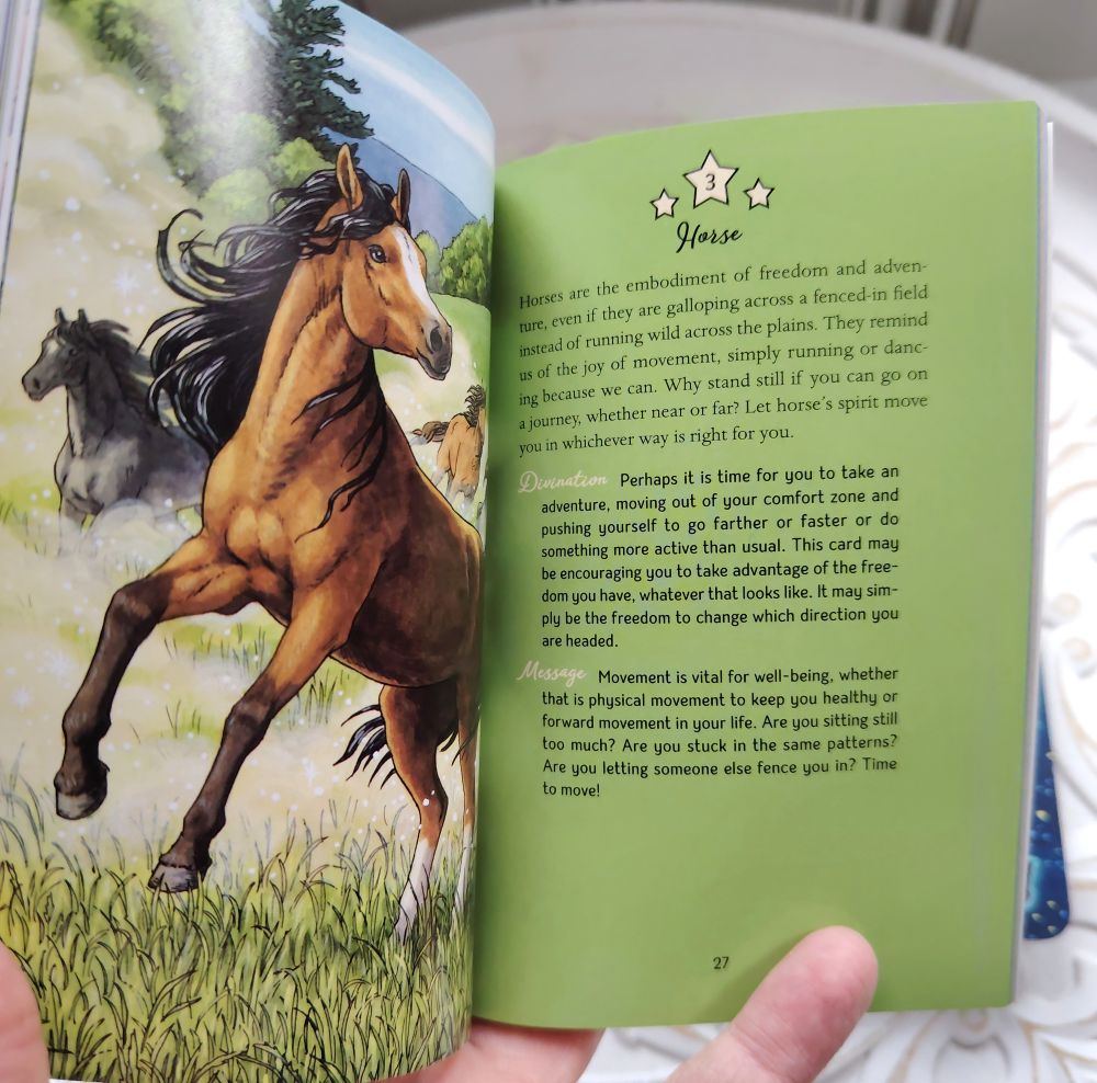 Tässä pakassa on 40 tuttua olentoa – kotieläimiä, villejä ja huikeita – joilla jokaisella on ainutlaatuisia ja voimaannuttavia viestejä sinulle. Nämä viiden elementin mukaan ryhmitellyt upeat olennot antavat voimakkaita ohjeita ennustamiseen ja jokapäiväiseen elämään. Korteissa on siis ilman, veden, maan, tulen ja eetterin eläimiä.