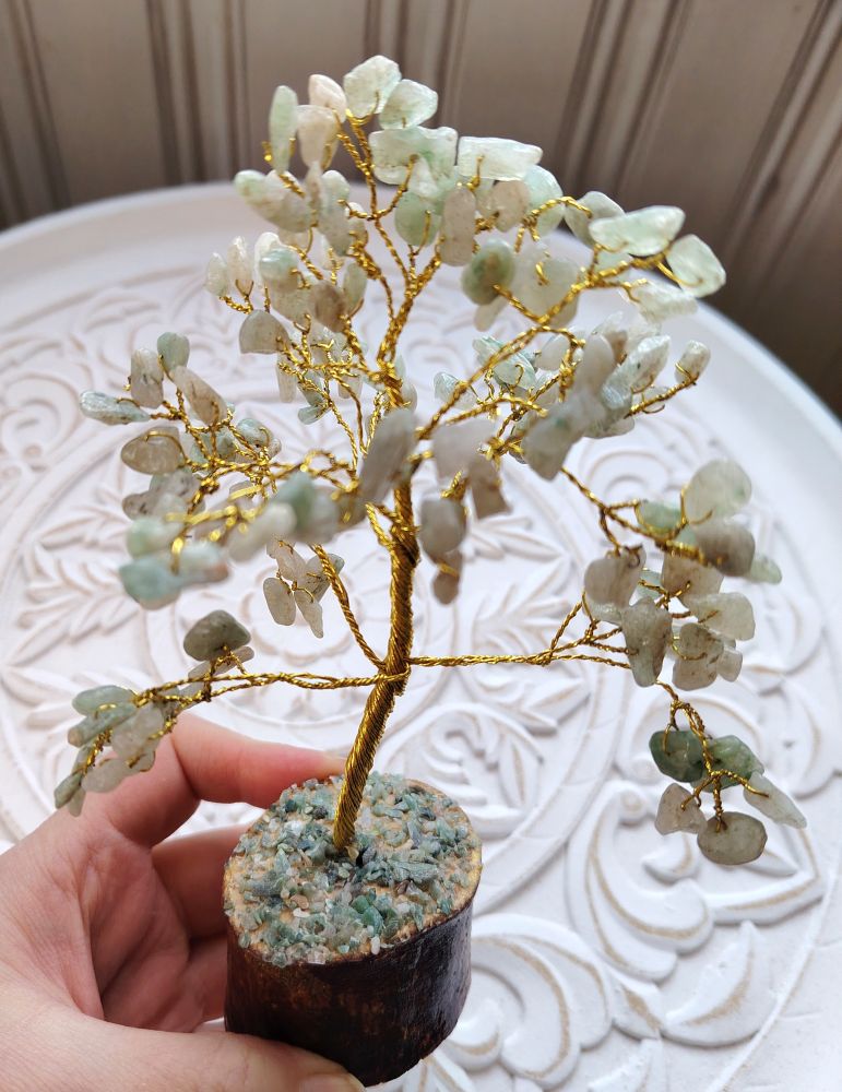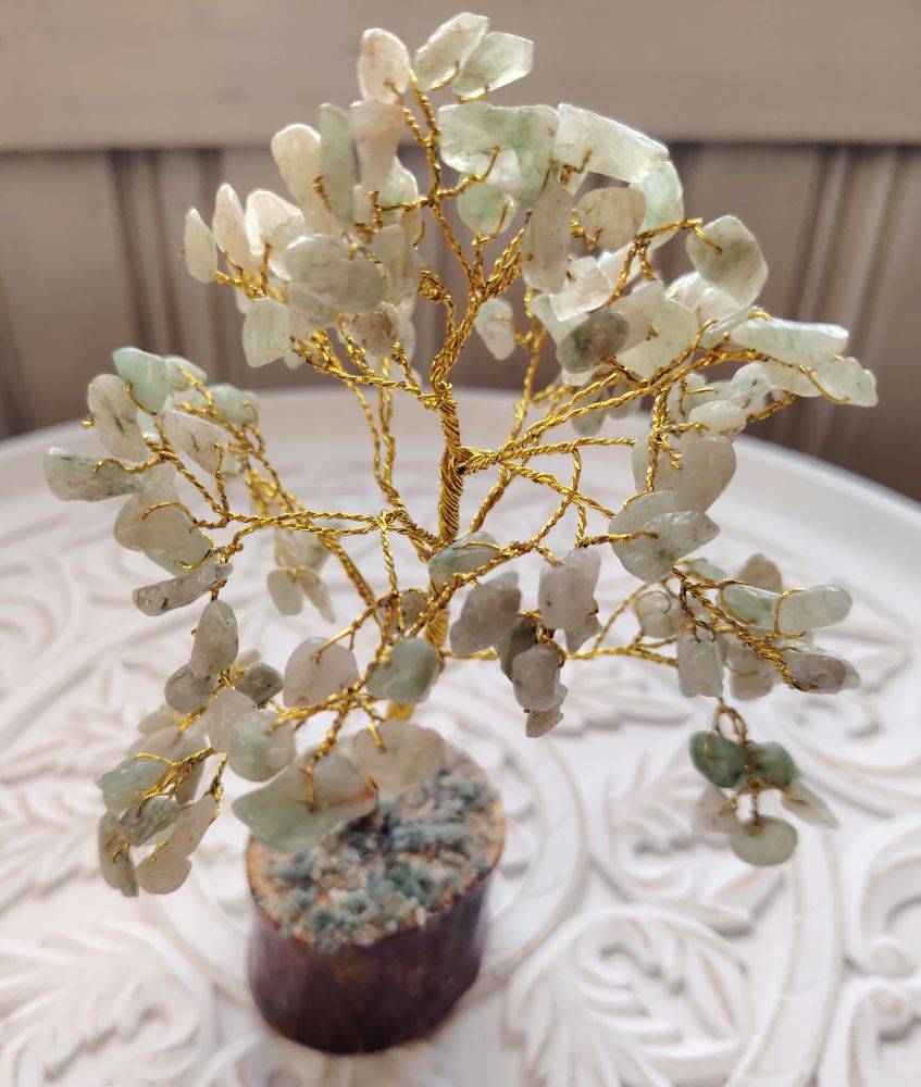 Feng Shui "vaurauspuut" ovat kaunis tapa tuoda tasapainoa ja harmoniaa elämääsi. Näiden puiden Feng Shui merkitys ja symboliikka juontaa juurensa kauas kiinalaisiin perinteisiin. Puut ovat kasvun, yltäkylläisyyden, pitkäikäisyyden ja elinvoimaisuuden symboleja. Tässä muutamia puiden ominaisuuksia: houkuttaa taloudellista vaurautta, tuo tukea perhe-elämään, edistää tietoa & opiskelua, parantaa menestystä, edistää uraa, parantaa terveyttä ja romanttisia suhteita, houkuttaa auttavia ihmisiä elämään, lisää luovuutta ja parantaa suojelua. Yleisesti nämä puut auttavat luomaan harmonisen tilan sinulle. Ne poistavat pysähtynyttä energiaa ja luovat positiivista chitä. Eri kivillä on myös omat merkityksensä. Vihreä aventuriini houkuttaa vaurautta ja hyvinvointia. Se luo mahdollisuuksia kasvuun ja menestykseen uralla. Vihreä aventuriini purkaa myös negatiivisia tilanteita ja se värähtelee sydänchakran kanssa.