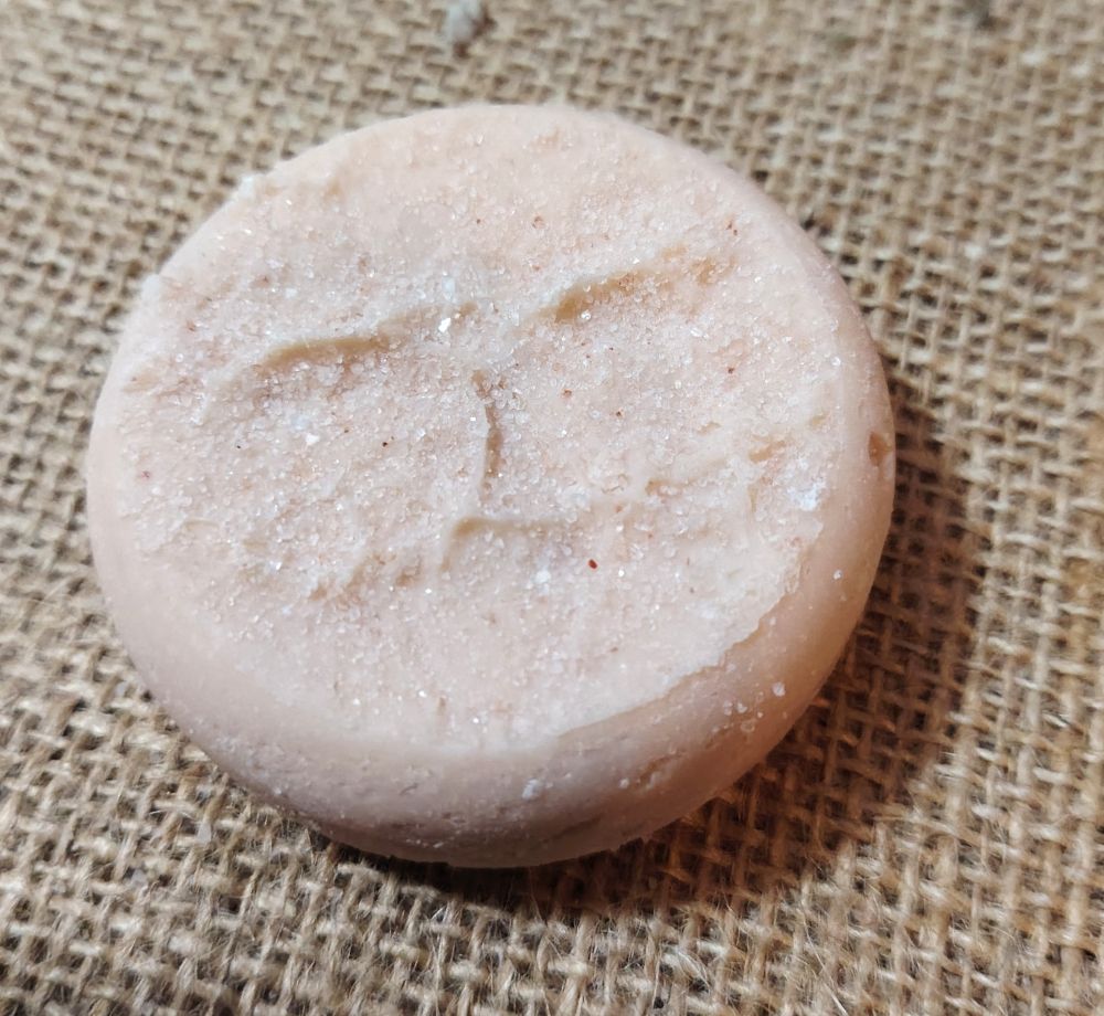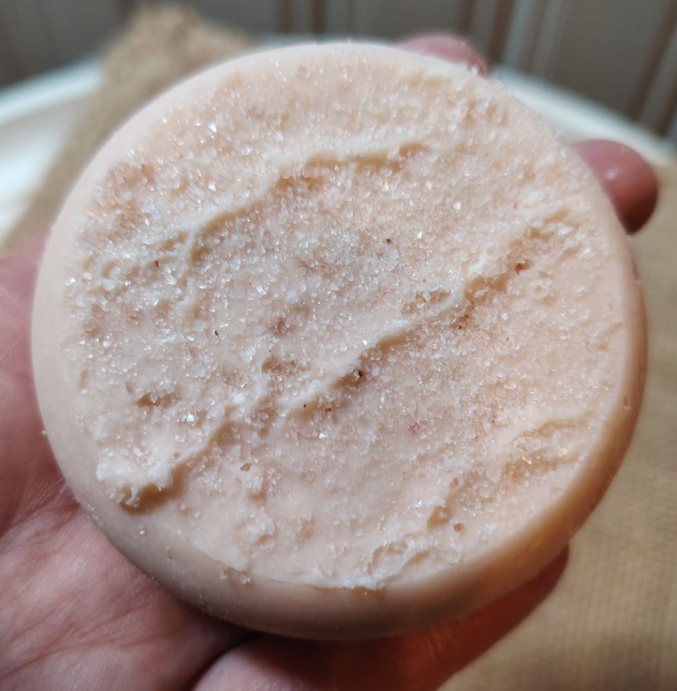 Tässä saippuassa on himalajansuolaa, vaaleanpunaista savea ja pelargonin eteeristä öljyä.