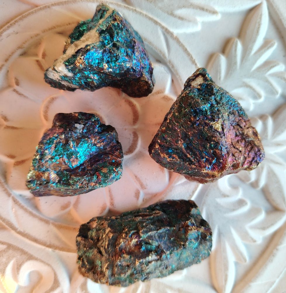 Kalkopyriitti (kuparikiisu) on iloa, muutosta ja uusia alkuja symboloiva kivi, joka tunnetaan hohtavista väreistään. Se tehostaa henkistä kasvua aktivoimalla kruunuchakraa, edistää luovuutta ja parantaa kommunikaatiota. Kalkopyriitti auttaa löytämään kadonneita asioita ja omaksumaan uusia polkuja, mikä tekee siitä onnellisuuden, inspiraation ja henkisen yhteyden kiven.