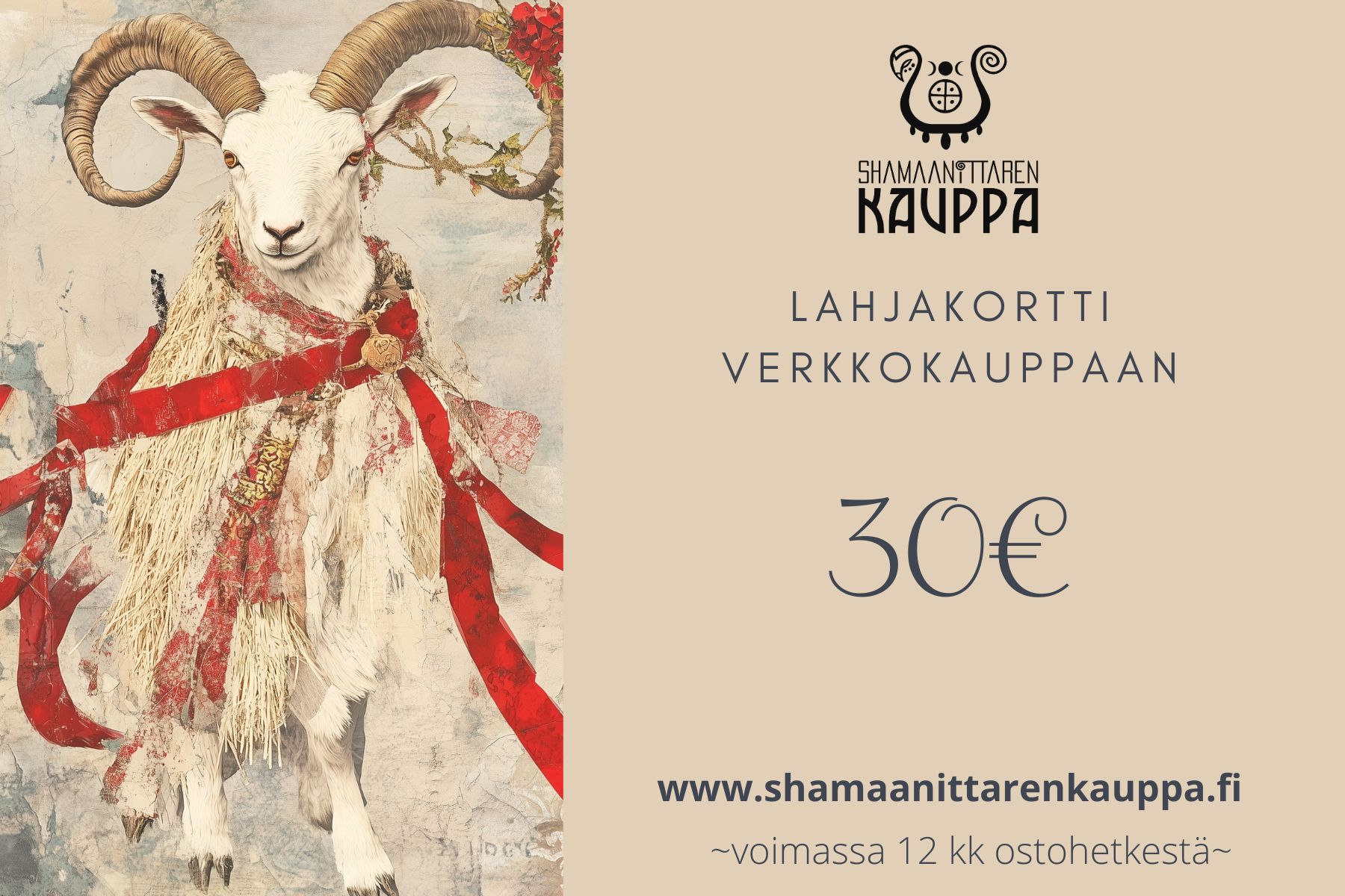 Tämä on sähköinen lahjakortti eli toimitan kuvassa näkyvän lahjakortin sähköisesti (PDF) tiedostona sähköpostiisi. Kun maksat tämän lahjakortin kaupassa valitse toimitustavaksi Sähköinen lahjakortti jolloin toimitusmaksu on 0€. Ostamaasi lahjakorttiin tulee yksilöllinen koodi (ei näy tässä kuvassa) jonka lahjansaaja voi käyttää verkkokauppatilauksen yhteydessä.