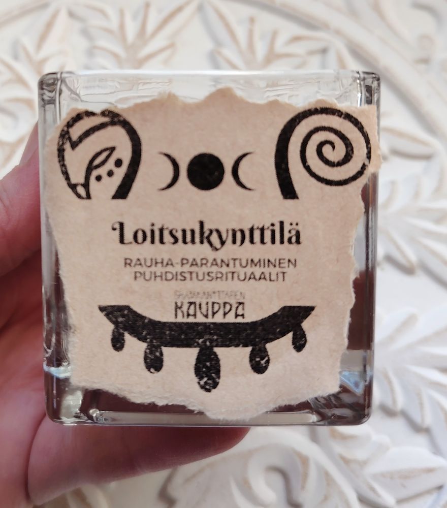 Lisätietoja kynttilästä: Kynttilän vaha on 100% rypsiöljyä (GMO vapaata rypsiä Saksasta) ja se on valmistettu kierrätettyyn lasiin. Tuoksut ovat parabeenittomia tuoksuöljyjä. Vaha on biohajoava ja siten vaaraton ihmisille ja ympäristölle. Paloaika n. 25 tuntia. Kynttilän koko 6 x 6 x 6 cm.