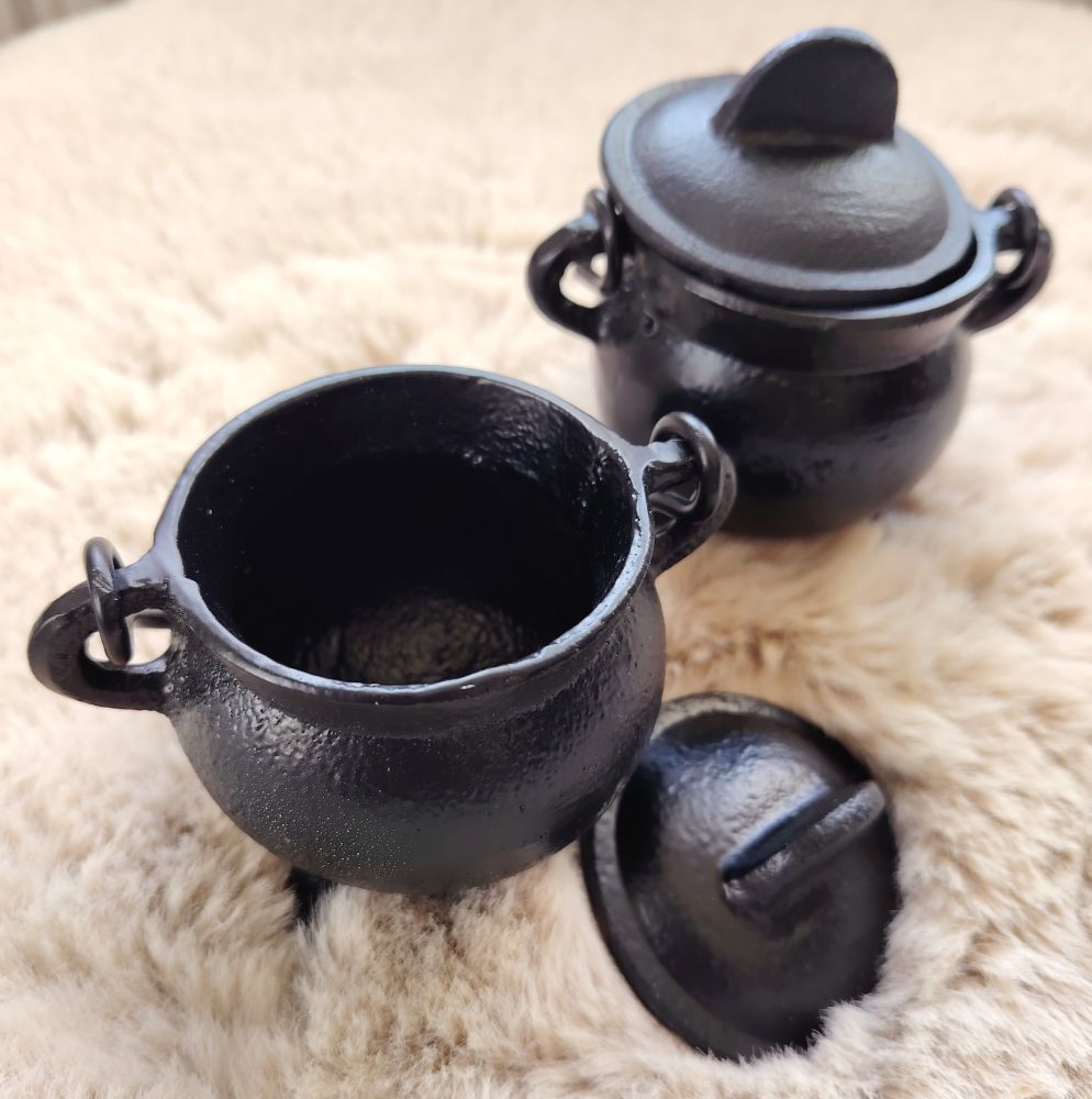 Valurautapata rituaaleihin tai suitsukkeiden polttamiseen. Tässä padassa ei ole mitään symboleja. Täytä hienolla hiekalla ja aseta suitsukehiili sen päälle ja siihen irtosuitsukkeet. Tai polta valmiita suitsuketikkuja. Käytännöllinen myös muihin omien juttujen tekemiseen padassa. Kolmijalkainen pata on vakaa.
