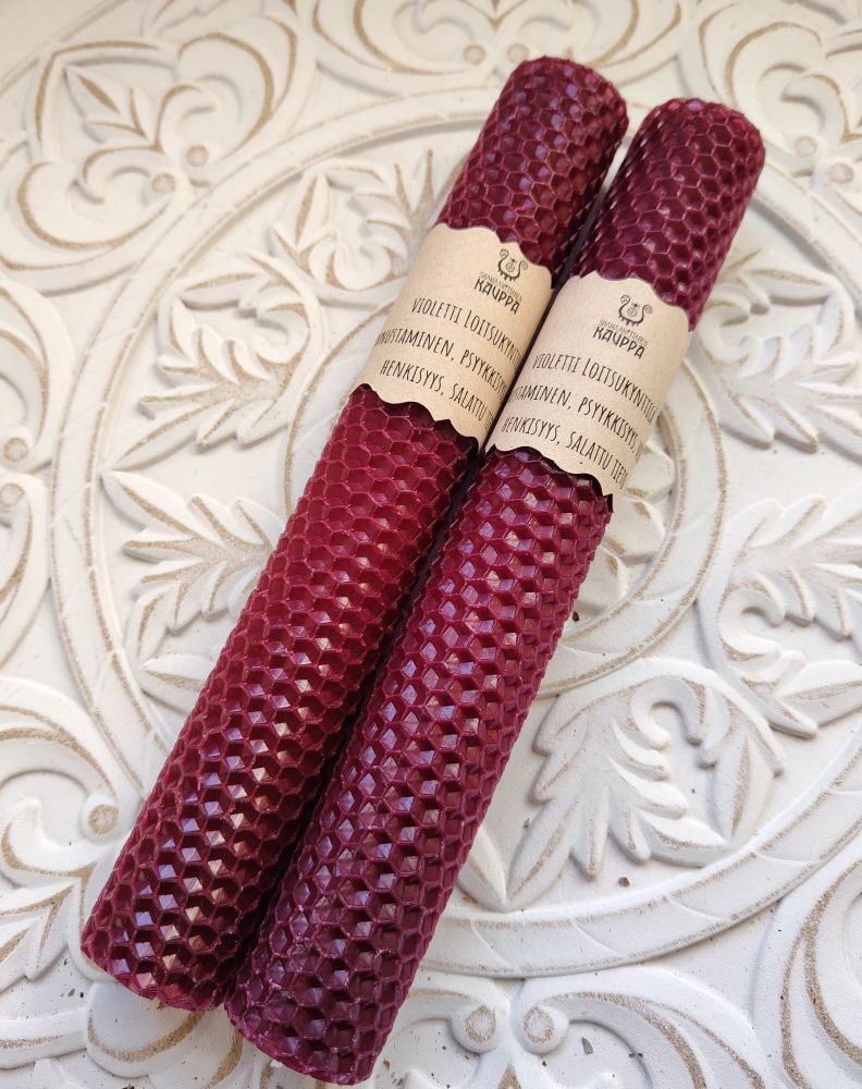 Violetti/purppura avaa kolmatta silmää ja kruunuchakraa. Violetti kynttilä sopii kun tahdot voimistaa psyykkisiä kykyjä ja saada yhteyttä henkioppaisiin/auttajiin. Violetti kynttilä kutsuu puoleensa parantavaa energiaa ja henkistä yhteyttä.