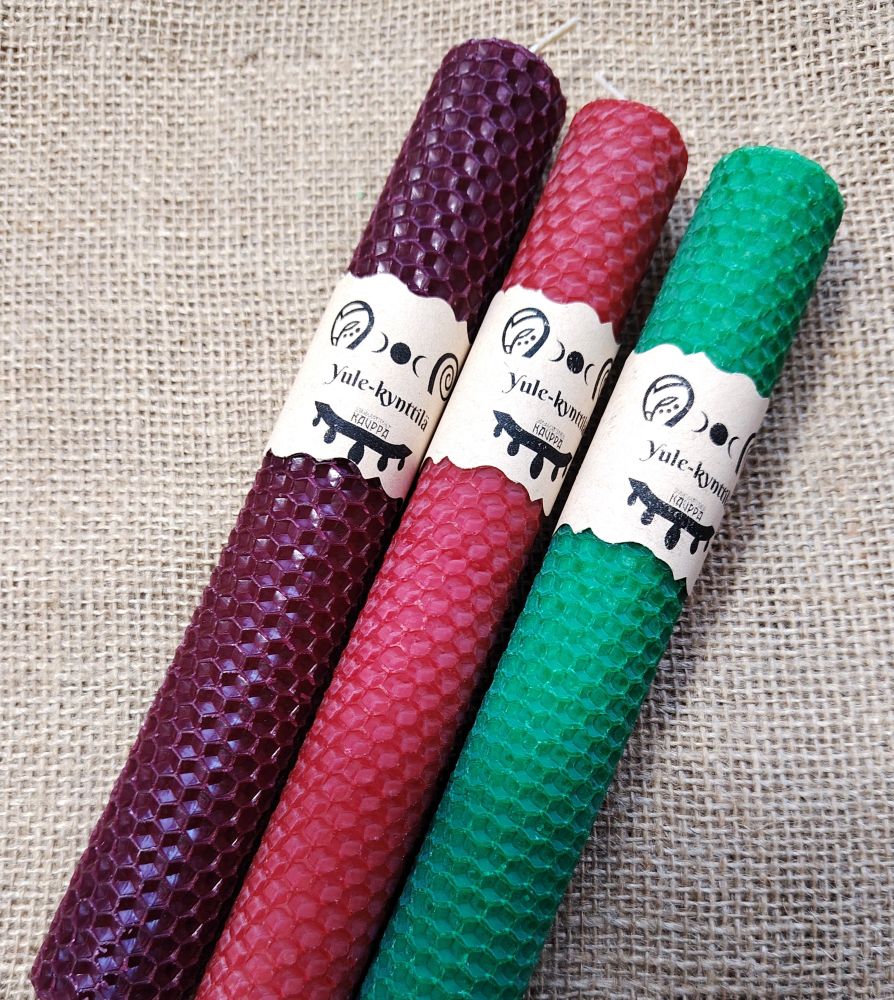 Kynttilän koko: pituus 22 cm ja halkaisija 3 cm. Pieniä eroja voi olla käsityön vuoksi. Valmistettu mehiläisvahasta. Tuoksuton. Paloaika n. 10 h. Hand made by Shamaanitar.