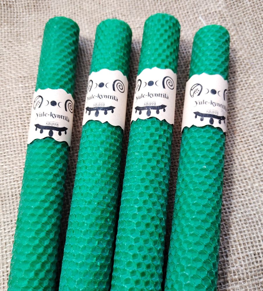 Kynttilän koko: pituus 22 cm ja halkaisija 3 cm. Pieniä eroja voi olla käsityön vuoksi. Valmistettu mehiläisvahasta. Tuoksuton. Paloaika n. 10 h. Hand made by Shamaanitar.