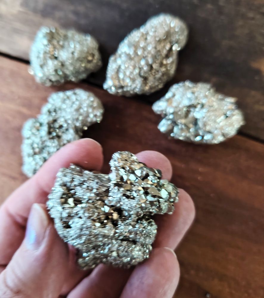 Pyriitti tuomaan kipinää manifestointeihin! Saat itsellesi jonkun kuvassa näkyvän pyriittikimpaleen. Näiden kiven paino vaihtelee välillä 55-58g ja koot ovat 3 cm x 5 cm/ 3 x 4 cm.