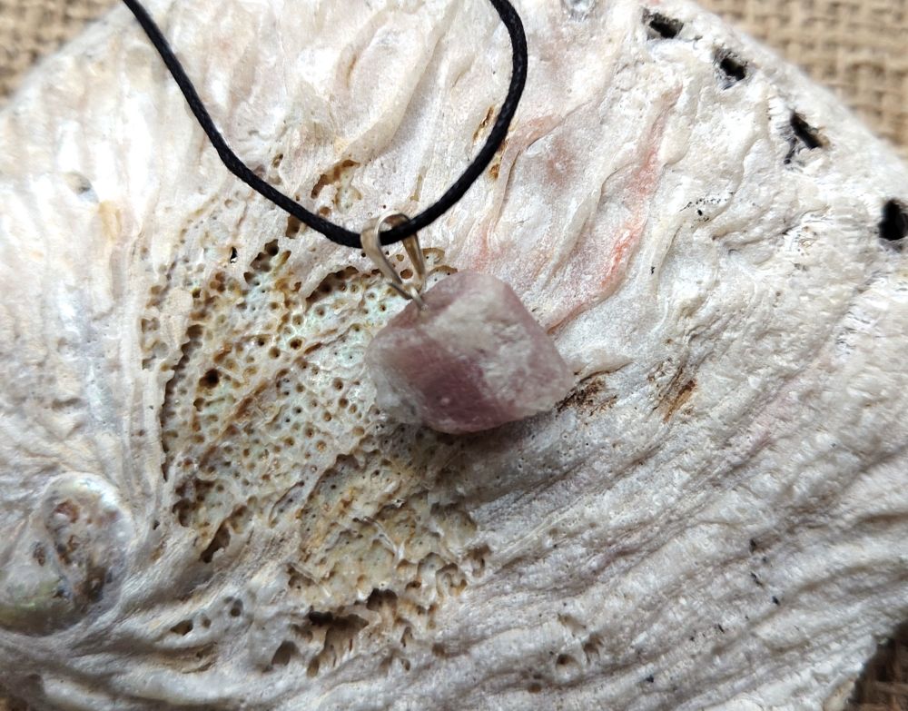 Shamaanittaren info: Vaaleanpunainen turmaliini on rakkauden, myötätunnon, emotionaalisen paranemisen ja itsensä rakastamisen kivi. Se auttaa rauhoittamaan tunteita ja on täydellinen kivi, jos kärsit päivittäisistä ahdistuskohtauksista. Tämä kivi saa parantavan voimansa siitä, että se muodostuu yleensä kvartsikiviin. Kvartsi vahvistaa luonnostaan kaikkia sen lähellä olevia kiviä. Kanna kiveä erityisesti silloin, jos olet kokenut tragedian, sydänsuruja, menettänyt rakkaan ihmisen tai tunnet masennusta. Koeta asettaa koru niin, että kivi on sydämesi kohdalla. Chakrat: sydän.