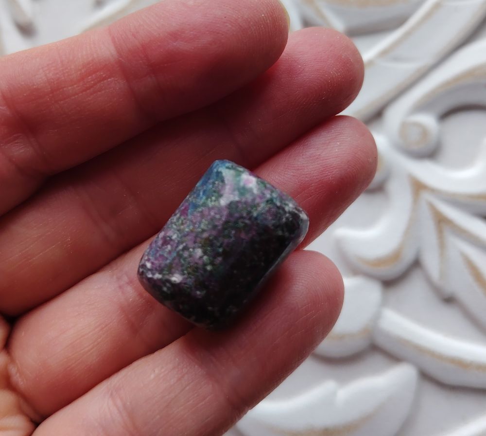 Rubiinifuksiitti on erinomainen yhdistelmäkivi sydänchakran parantamiseen! Löysin tämän yhden pienen kiven toisten kivien joukosta (mennyt väärään paikkaan). Saat itsellesi kuvassa näkyvän kiven. Koko: 2 x 2 cm, paino 10g.