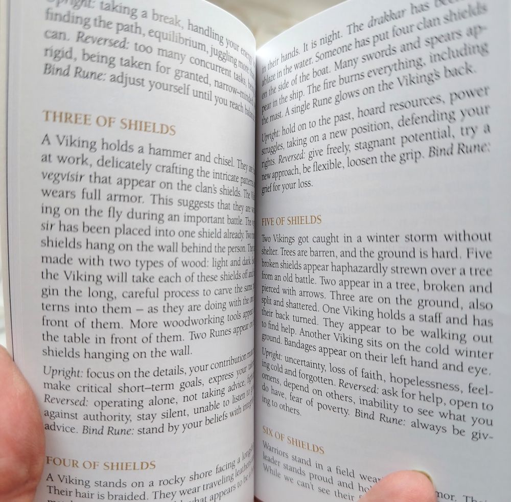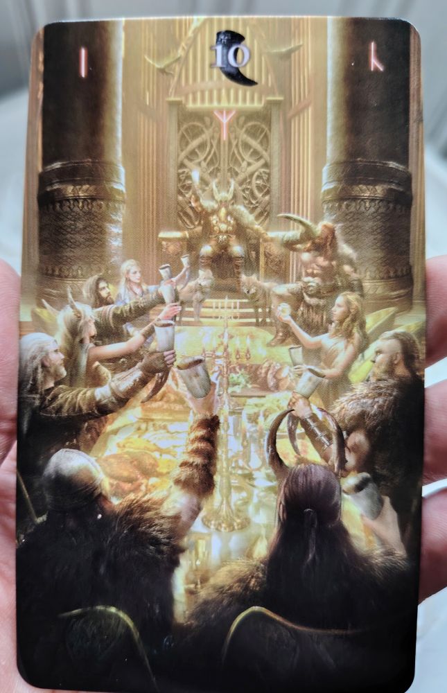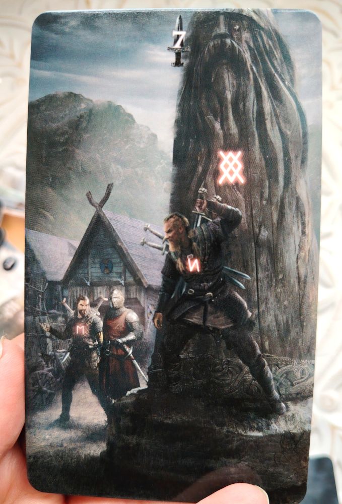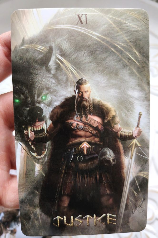 Todella upeat viikinki viboilla varustetut tarot-kortit! Pienissä arkanoissa on maljoina juomasarvet, lantteina suojakilvet, sauvoina riimusauvat ja miekat.