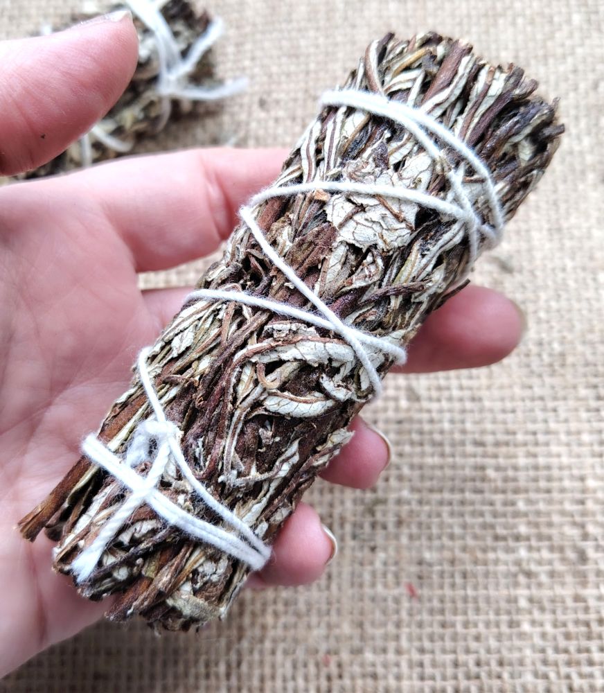 Tässä suitsukkeessa on yhdessä salviaa ja piparminttua.