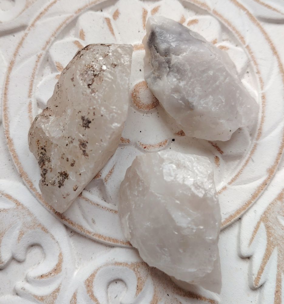 Suomalaista kvartsia. Saat itsellesi yhden kuvassa näkyvistä kivistä. Näiden kivien koko muodon mukaan on 3 x 4 cm/ 3 x 6 cm. Paino välillä 42-53 g. Yhden kvartsin sisällä on joko mustaa turmaliinia tai muuta kiveä. Alkuperä: Kuortane, Etelä-Pohjanmaa