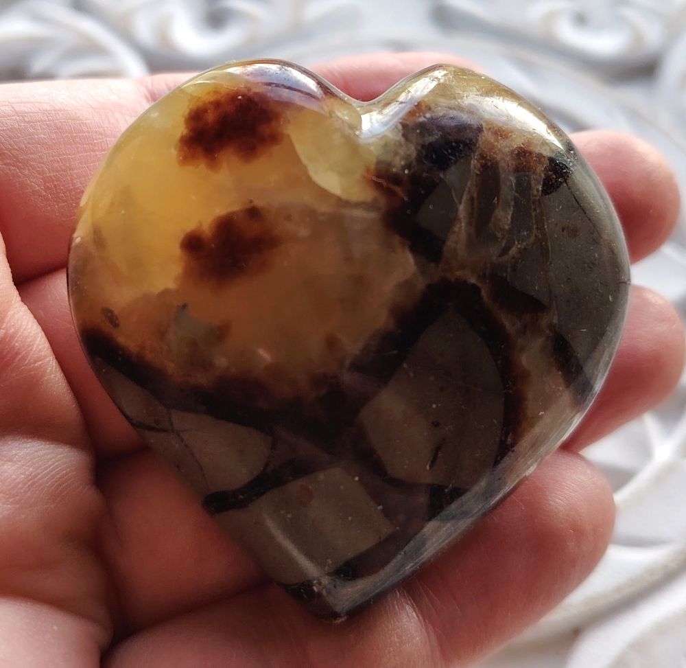 Septarian on kaunis kivi, joka on miljoonia vuosia vanha. Se kantaa sisällään palasen aikaa ja viisautta. Kivessä värähtelee voimakas maaelementin energia. Septarianin ominaisuudet: maadoitus, suojelu, yhteys muinaiseen viisauteen ja parempi kommunikaatio. Tätä kiveä voi käyttää ns. "puhekivenä", joka lisää itseluottamusta erityisesti julkisessa esiintymisessä. Sydämiksi muotoillut kivet symboloivat rakastavaa energiaa. Chakrat: juuri, sakraali, solar plexus