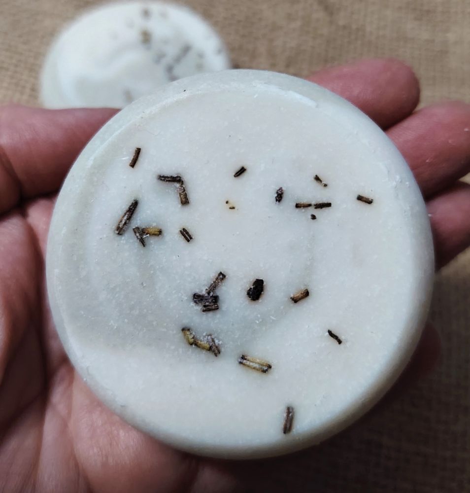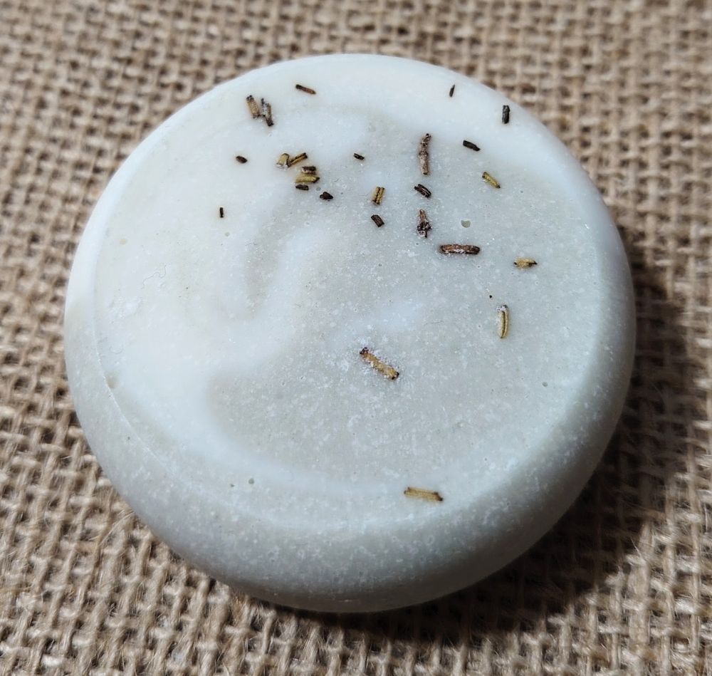 Tässä saippuassa on merisuolaa, vihreää montmorliittisavea ja rosmariinin eteeristä öljyä.