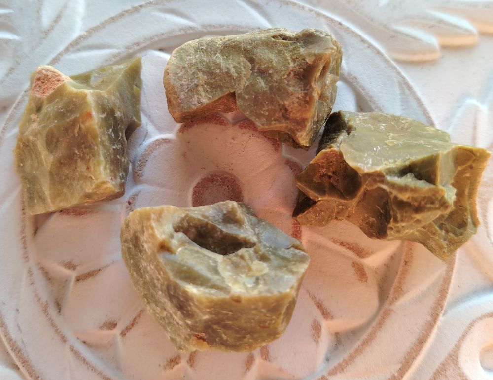 Vihreää opaalia raakapalana. Saat itsellesi jonkun kuvassa näkyvistä kivistä. Kivien koko n. 3 x 4 cm, paino 21g -24g