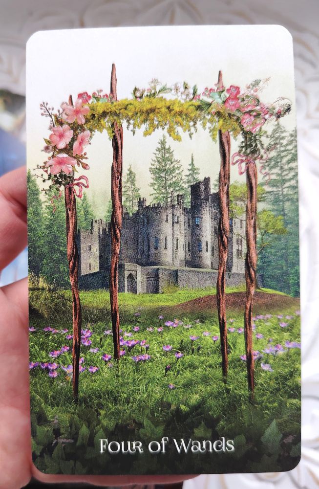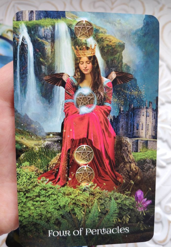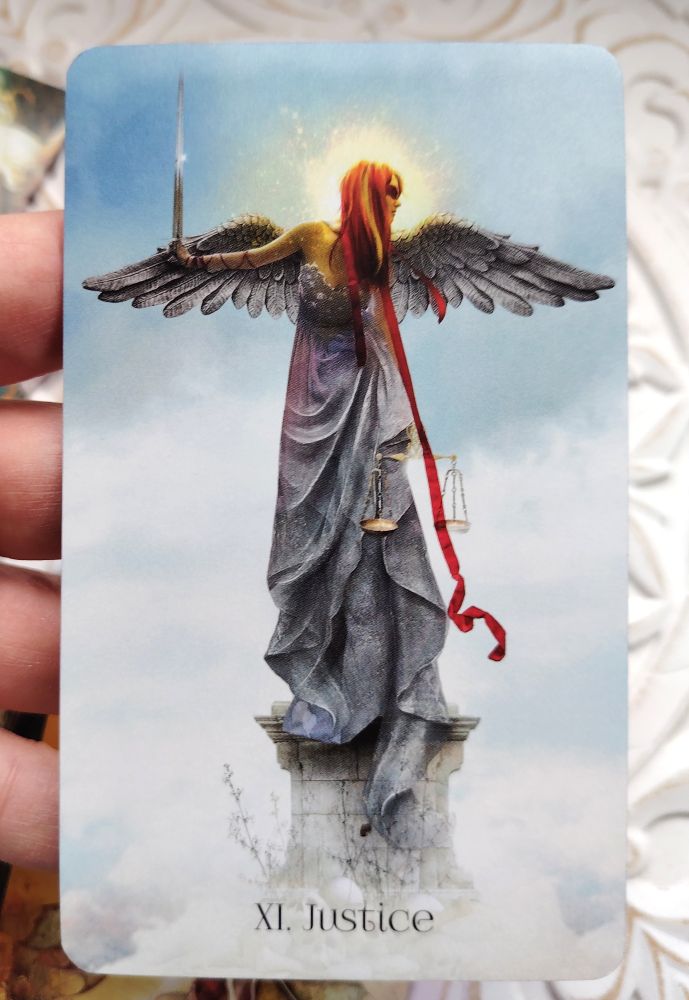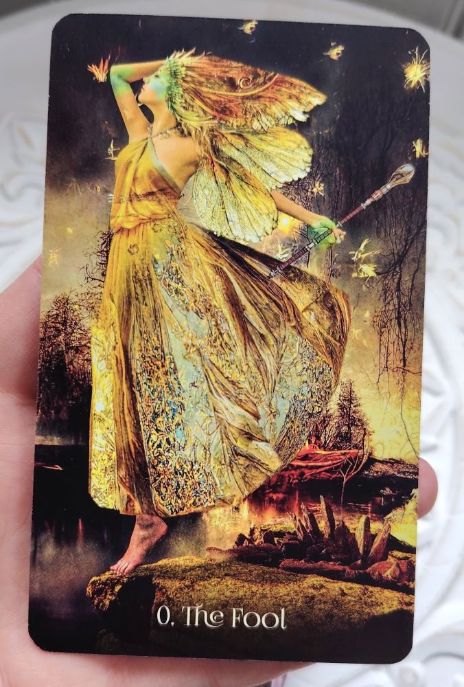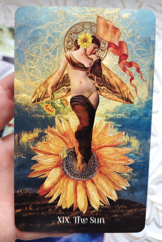 Lisätietoja: kaunis kovakantinen rasia, jossa on myös sisällä inspiraatiokuva ja teksti. Korttien reunuksissa on violetti kultaus. Pakan mukana tulee organza pussukka, jossa kortteja voi säilyttää. Huikean paksu 198-sivuinen opaskirja.